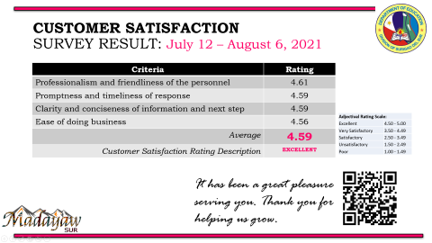 CUSTOMER SATISFACTION SURVEY RESULT July 12- August 6, 2021