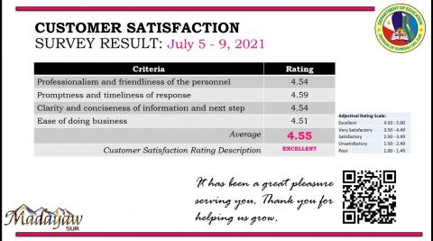 CUSTOMER SATISFACTION SURVEY RESULT July 5-9, 2021