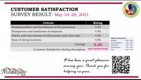 CUSTOMER SATISFACTION SURVEY RESULT May 24-28, 2021